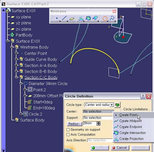 Circle type : Center and Radius