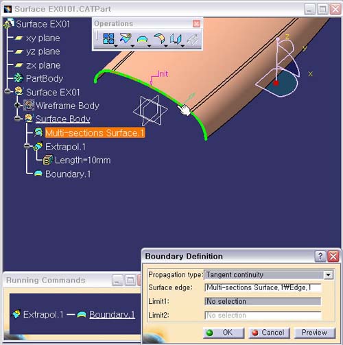 Surface edge : Multi-section Surface.1ÀÇ ÇÑ Edge Curve¸¦