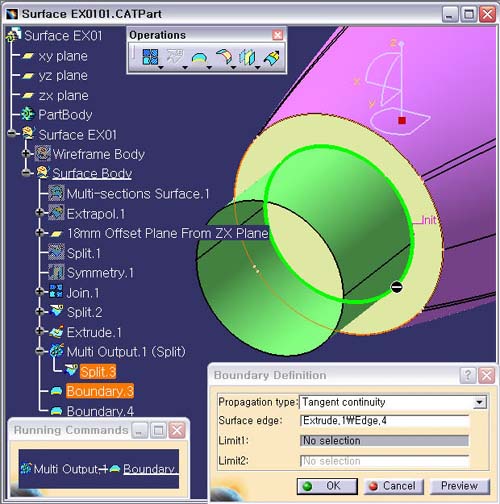 edge : Extrude.1 SurfaceÀÇ Edge Curve¸¦ ¼±ÅÃÇÑ´Ù.