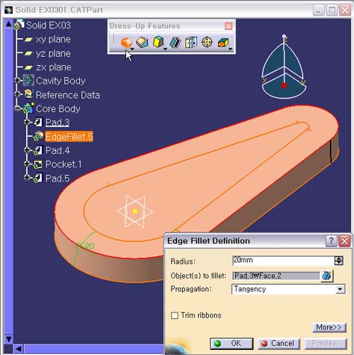 to fillet : Pad.3 »óºÎ¸éÀ» ¼±ÅÃÇÑ´Ù.