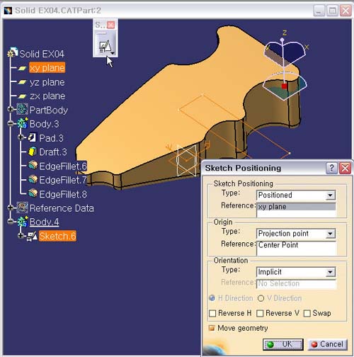 (Sketch ÀÇ H Axis´Â CompassÀÇ X Axis¸¦ ÇâÇÏ´ÂÁö È®ÀÎÇϰí,      Sketch ÀÇ V Axis´Â CompassÀÇ Y Axis¸¦ ÇâÇÏ´ÂÁö È®ÀÎÇÑ´Ù.)
