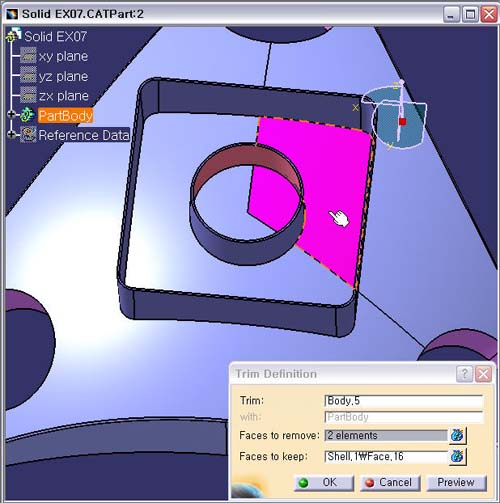 1. Union Trim ¿¬»ê ÀÛ¾÷Çϱâ Trim Definition â¿¡¼ Faces to remove : ÃÖÁ¾ °á°ú¹°ÀÇ ¼Ö¸®µå »óºÎÀÇ º¸¶ó»ö µÎ ºÎºÐÀ» ¼±ÅÃÇÑ´Ù.